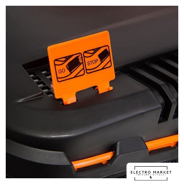 роторная газонокосилка, аккумуляторный двигатель, 18 В, аккумулятор в комплекте, ширина скашивания: 37 см, мягкий травосборник 45 л