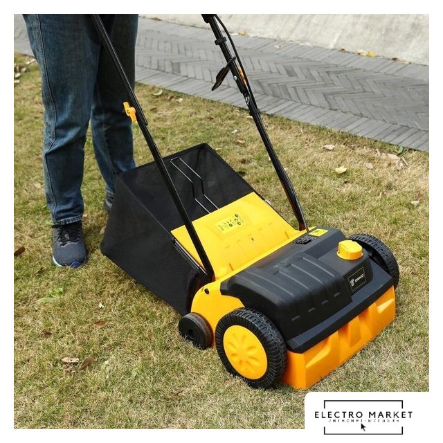 скарификатор-аэратор, электрический двигатель, 1800 Вт, ширина скашивания: 38 см, мягкий травосборник 30 л