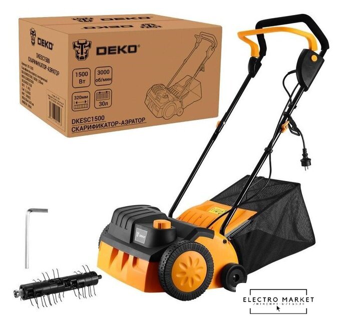 скарификатор-аэратор, электрический двигатель, 1200 Вт, 1.63 л.с., ширина скашивания: 31 см, мягкий травосборник 28 л