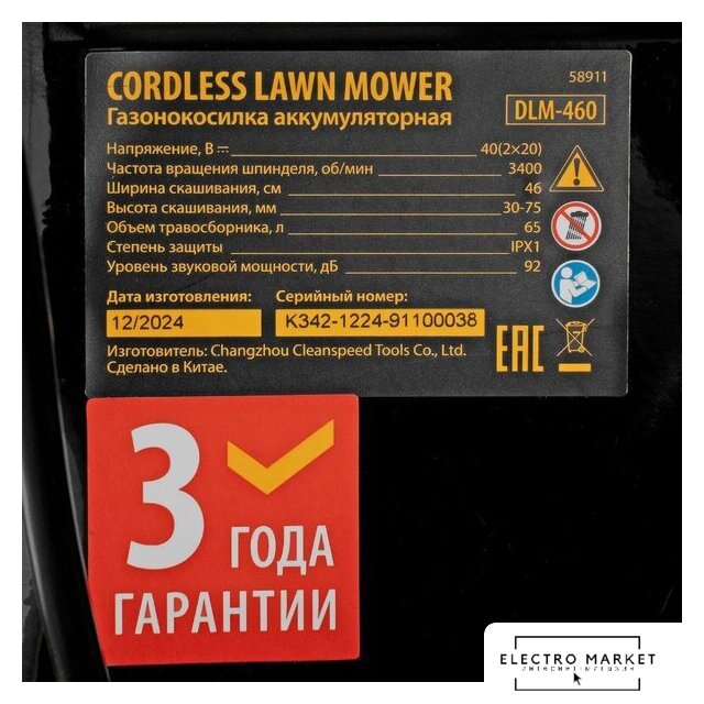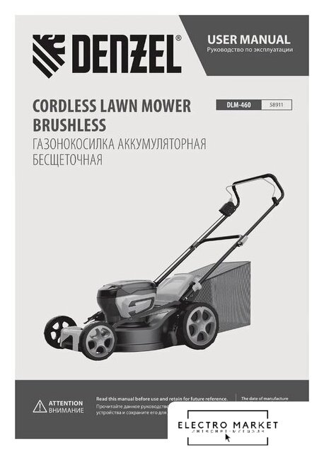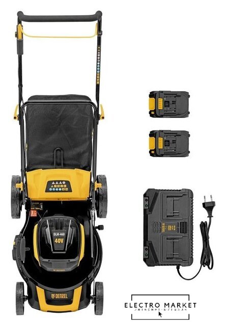 | Комплектация | Газонокосилка в сборе с ножом и колесами - 1 штАккумуляторная батарея Denzel Power System - 2 штЗарядное устройство - 1 штТравосборник - 1 штВерхняя часть рукоятки - 2 штФиксаторы рукоятки - 2 штБолт для фиксатора рукоятки - 2 штШайба для фиксатора рукоятки - 2 штКлипса для провода - 2 штДефлектор бокового выброса - 1 штЗаглушка для мульчирования - 1 штРуководство по эксплуатации с гарантийным талоном - 1 шт |