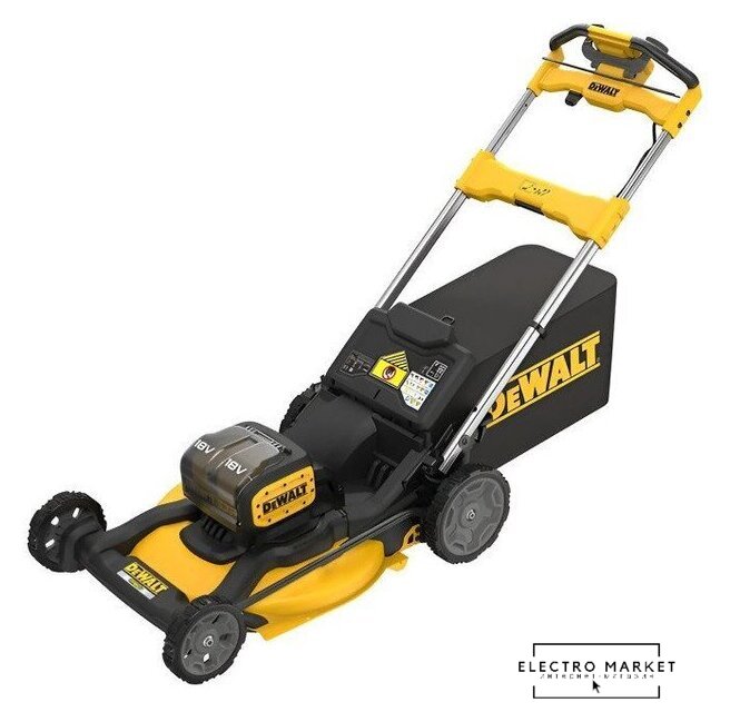 роторная газонокосилка, аккумуляторный двигатель, работа от аккумулятора, ширина скашивания: 46 см, мягкий травосборник 60 л, корпус: сталь