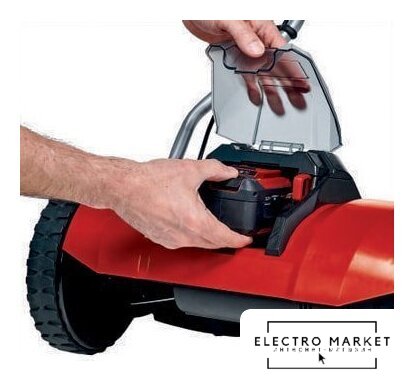 колёсная газонокосилка, аккумуляторный двигатель, ширина скашивания: 30 см, жесткий травосборник 25 л, корпус: пластик