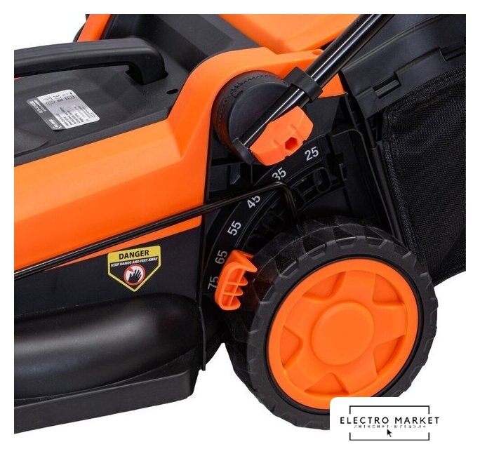 роторная газонокосилка, электрический двигатель 1400 Вт, ширина скашивания: 37 см, мягкий травосборник 35 л