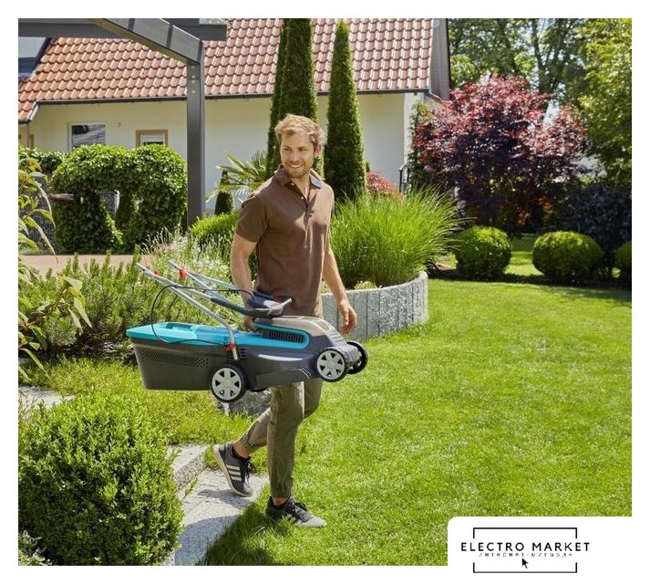 роторная газонокосилка, гибридный двигатель, 18 В, аккумулятор в комплекте, ширина скашивания: 37 см, мягкий травосборник 45 л