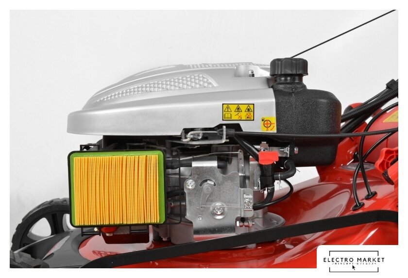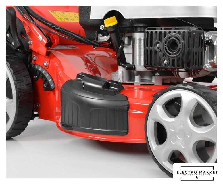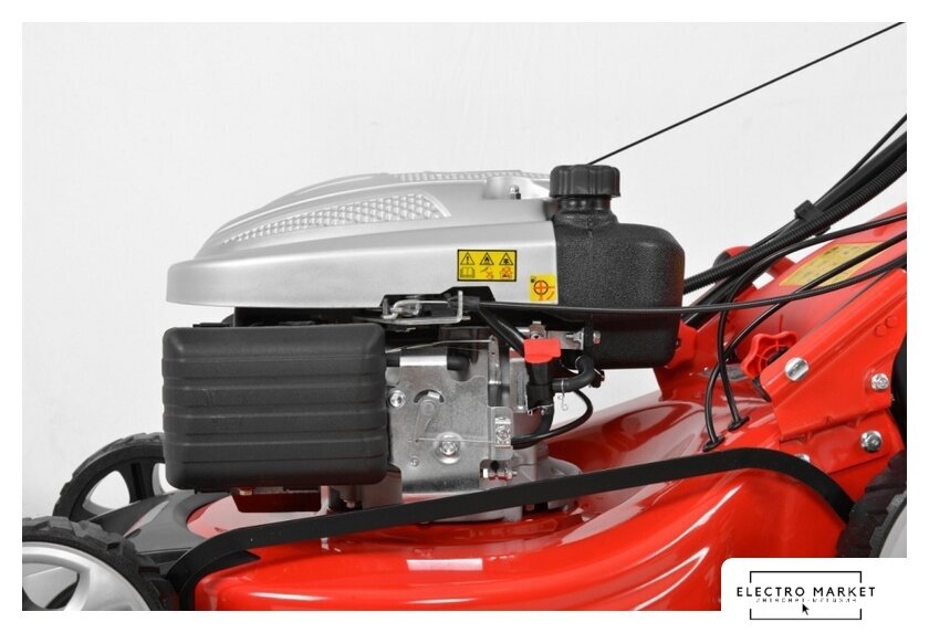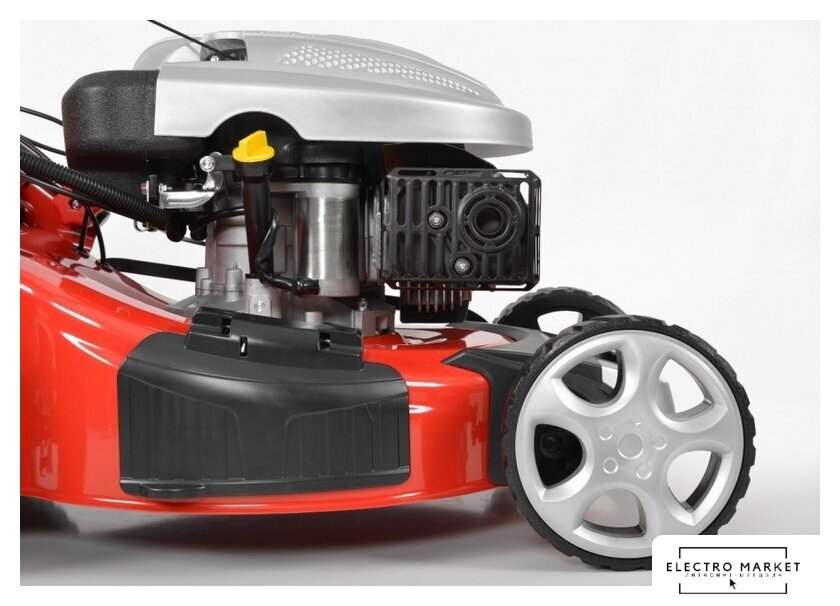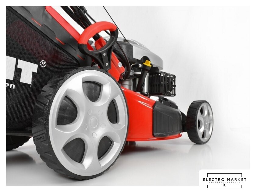 колёсная газонокосилка, бензиновый двигатель, 1900 Вт, ширина скашивания: 43 см, мягкий травосборник 50 л, корпус: сталь