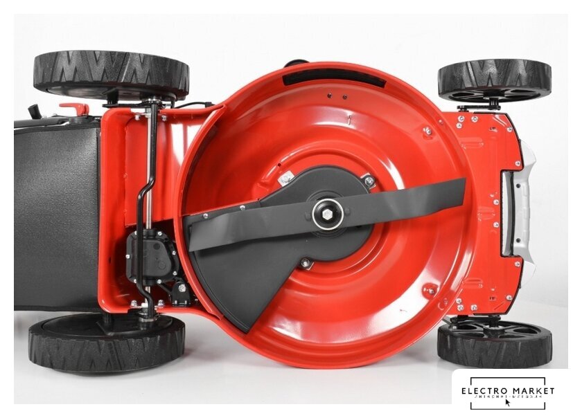 колёсная газонокосилка, аккумуляторный двигатель, работа от аккумулятора, ширина скашивания: 46 см, мягкий травосборник 60 л, корпус: сталь