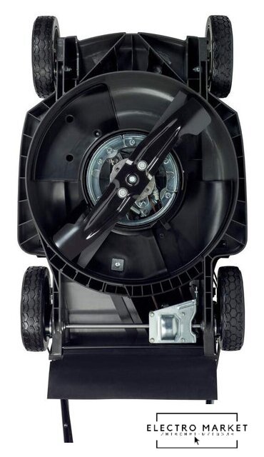 роторная газонокосилка, аккумуляторный двигатель, работа от аккумулятора, ширина скашивания: 53 см, мягкий травосборник 70 л, корпус: сталь