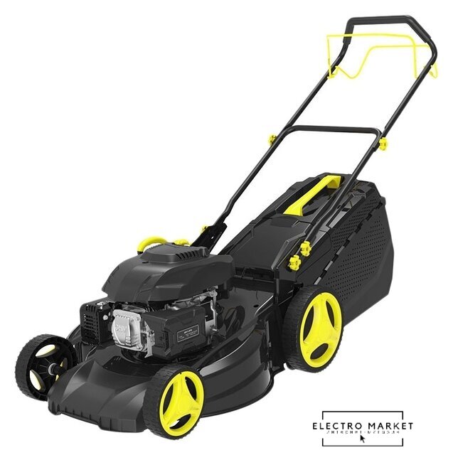 колёсная газонокосилка, бензиновый двигатель (4.6 л.с.), ширина скашивания: 51 см, мягкий травосборник 70 л, корпус: сталь