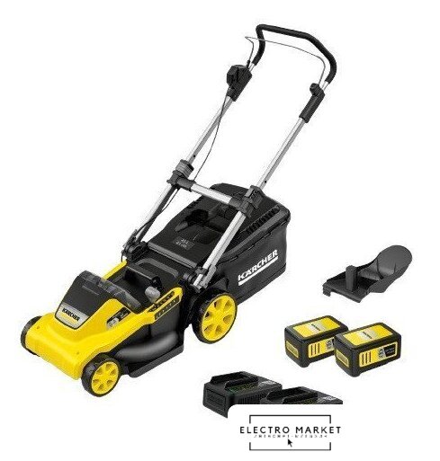 роторная газонокосилка, аккумуляторный двигатель, работа от аккумулятора, ширина скашивания: 46 см, мягкий травосборник 60 л, корпус: сталь