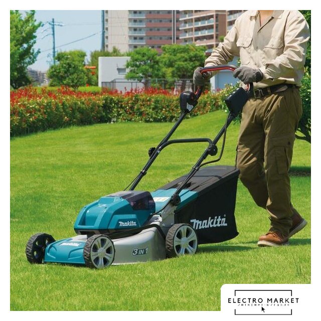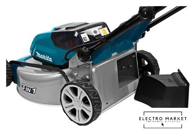 роторная газонокосилка, аккумуляторный двигатель, 860 Вт, 18 В, аккумулятор в комплекте, ширина скашивания: 48 см, мягкий травосборник 62 л
