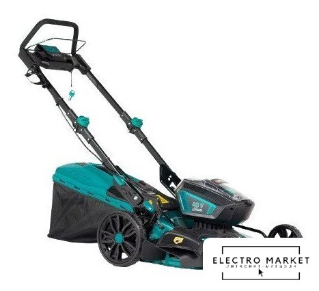 роторная газонокосилка, аккумуляторный двигатель, 1300 Вт, 1.77 л.с., 48 В, аккумулятор в комплекте, ширина скашивания: 46 см, мягкий травосборник 60 л