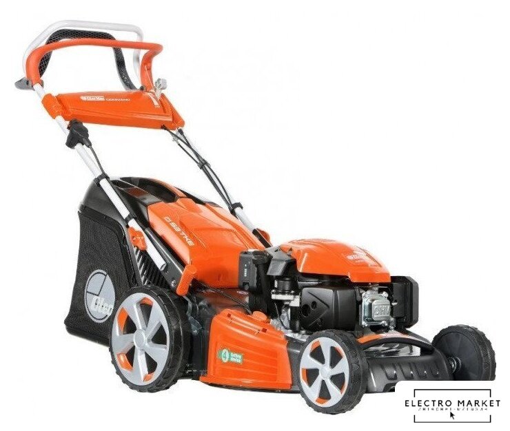 роторная газонокосилка, бензиновый двигатель 2100 Вт, ширина скашивания: 46 см, мягкий травосборник 60 л, корпус: сталь