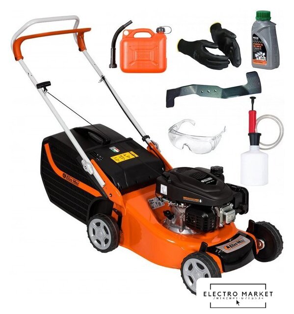 роторная газонокосилка, самоходная, бензиновый двигатель, 2000 Вт, 2.72 л.с., ширина скашивания: 46 см, мягкий травосборник 60 л