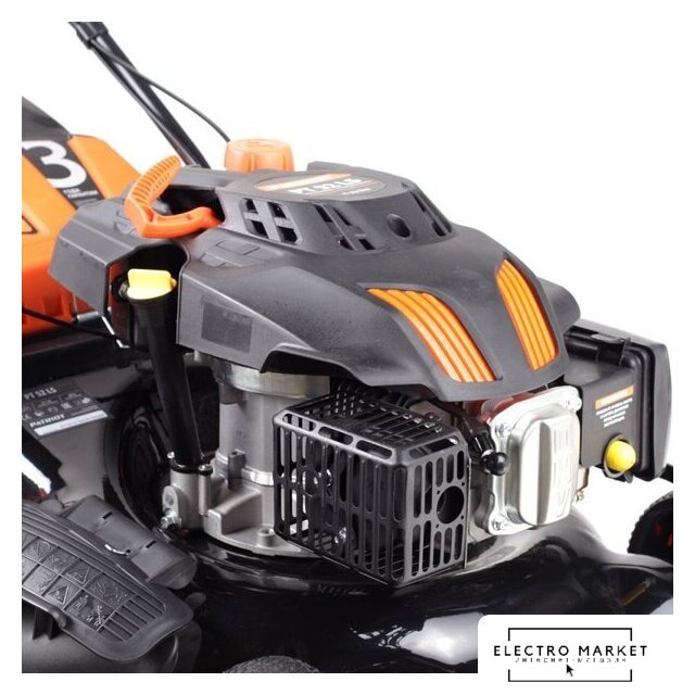 колёсная газонокосилка, бензиновый двигатель, 4500 Вт, ширина скашивания: 53 см, мягкий травосборник 75 л, корпус: сталь