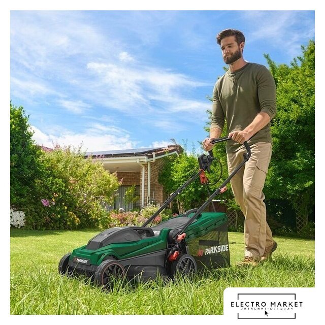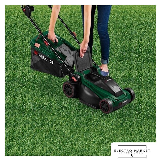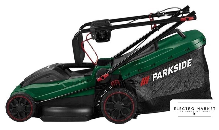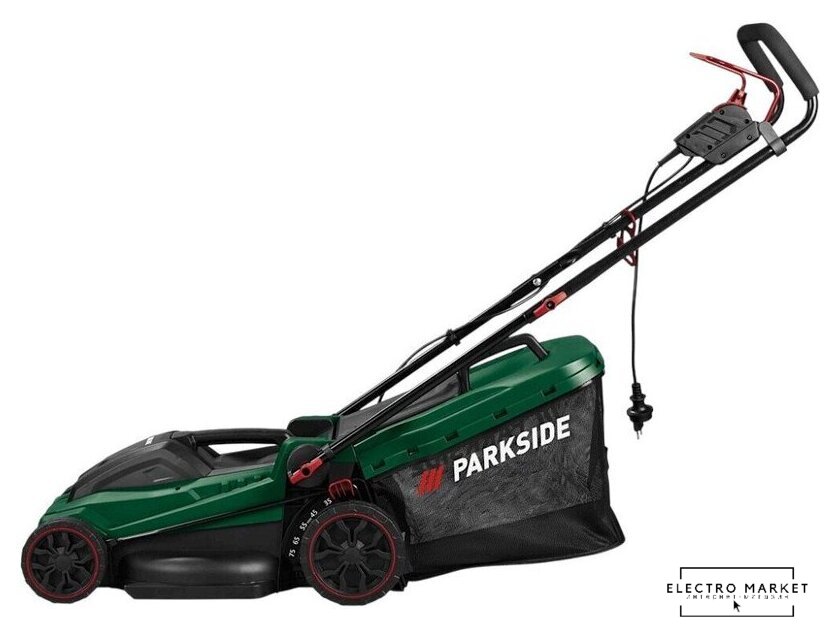 роторная газонокосилка, электрический двигатель, 1600 Вт, 2.17 л.с., ширина скашивания: 38 см, мягкий травосборник 45 л
