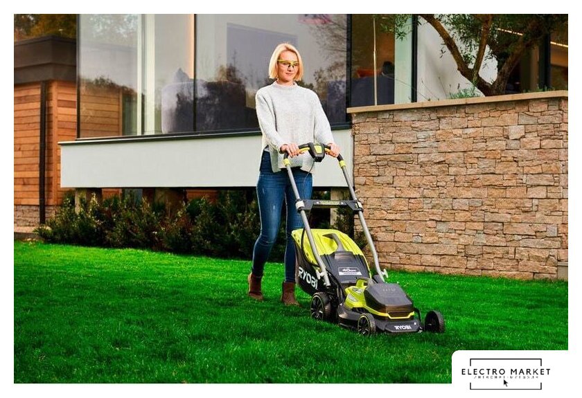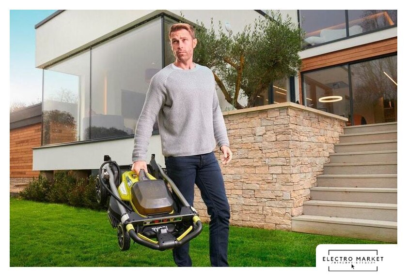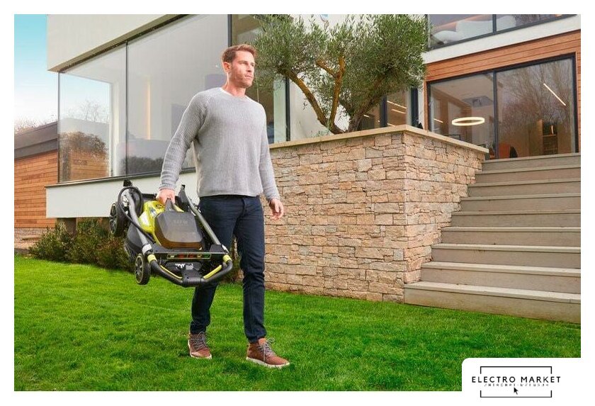 колёсная газонокосилка, аккумуляторный двигатель, работа от аккумулятора, ширина скашивания: 43 см, мягкий травосборник 50 л, корпус: пластик
