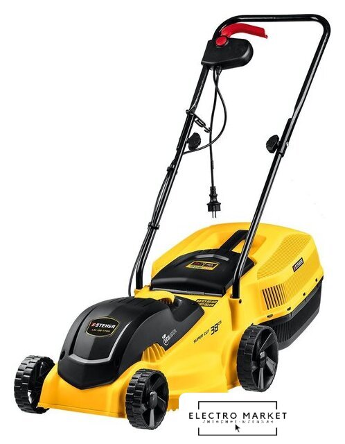 роторная газонокосилка, электрический двигатель, 1600 Вт, 2.17 л.с., ширина скашивания: 38 см, мягкий травосборник 35 л