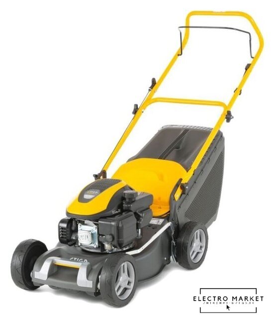 роторная газонокосилка, бензиновый двигатель (5 л.с.), ширина скашивания: 46 см, жесткий травосборник 50 л