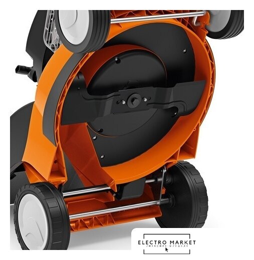 колёсная газонокосилка, аккумуляторный двигатель, работа от аккумулятора, ширина скашивания: 43 см, мягкий травосборник 50 л, корпус: пластик