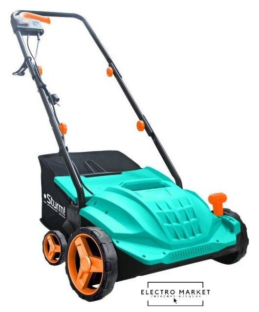 скарификатор-аэратор, электрический двигатель, 1800 Вт, ширина скашивания: 38 см, мягкий травосборник 30 л