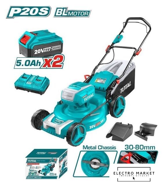 | Комплектация | - Газонокосилка аккумуляторная - 1 шт.- Травосборник 60 л - 1 шт.- Заглушка для мульчирования - 1 шт.- Устройство бокового выброса - 1 шт.- Аккумулятор 5,0 Ач - 2 шт.- Зарядное устройство - 1 шт.- Инструкция |