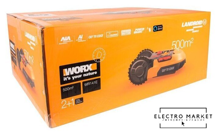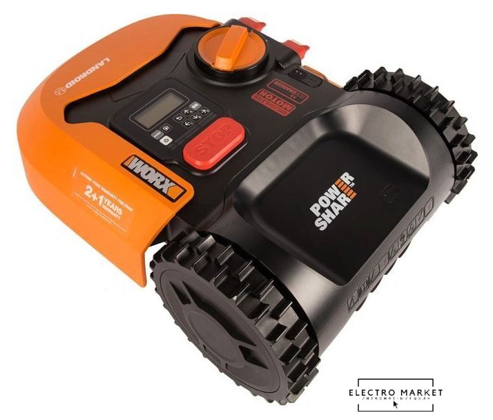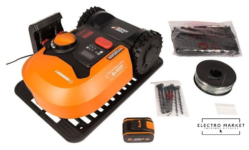 | Комплектация | аккумулятор, блок питания, зарядная станция, нож, провод по периметру, фиксаторы для зарядной станции и провода, шестигранный ключ |