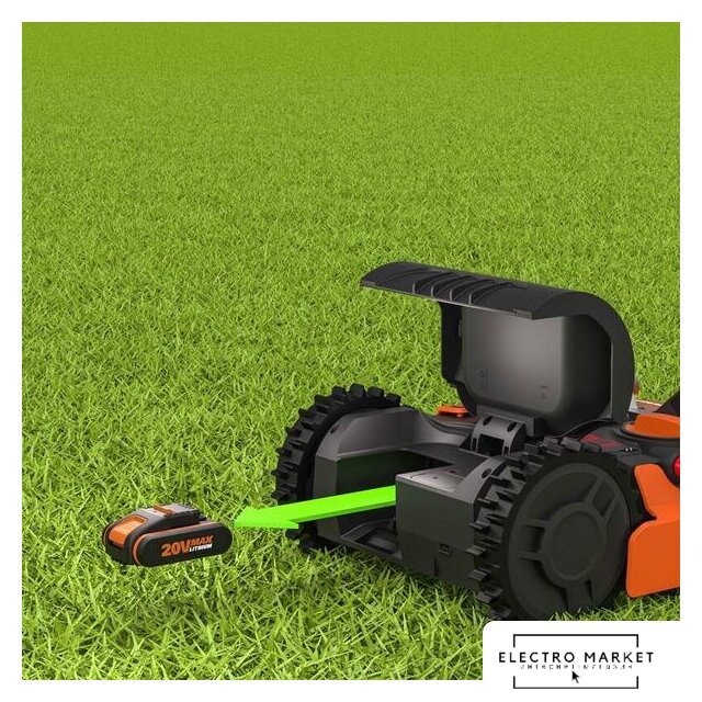 газонокосилка-робот, самоходная, аккумуляторный двигатель, 20 В, аккумулятор в комплекте, ширина скашивания: 22 см