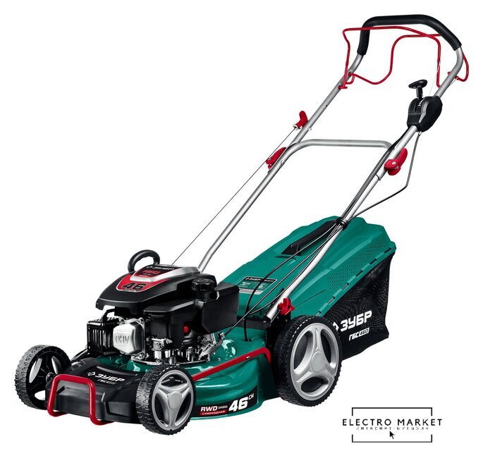 роторная газонокосилка, самоходная, бензиновый двигатель, 2500 Вт, 3.4 л.с., четырехтактный, ширина скашивания: 46 см, жесткий травосборник 55 л