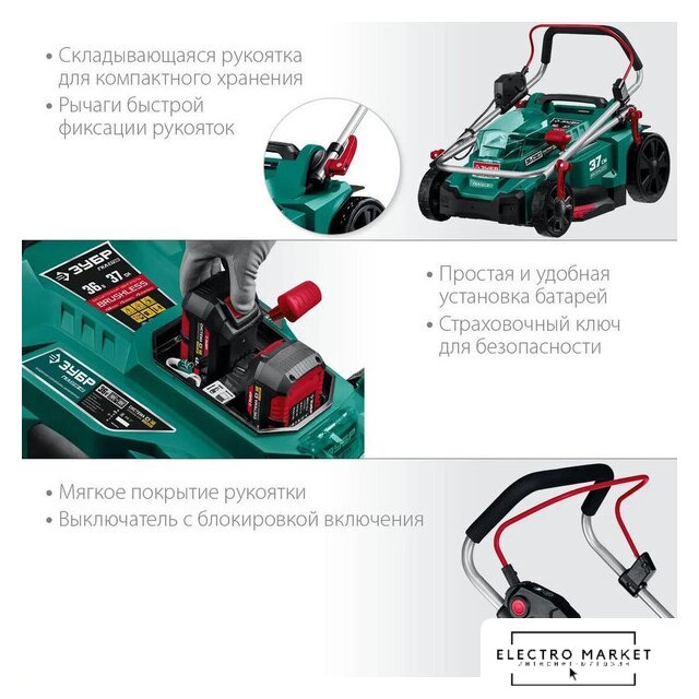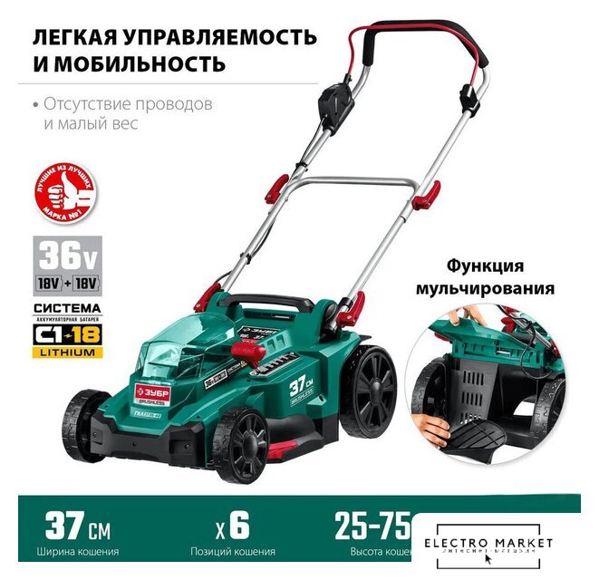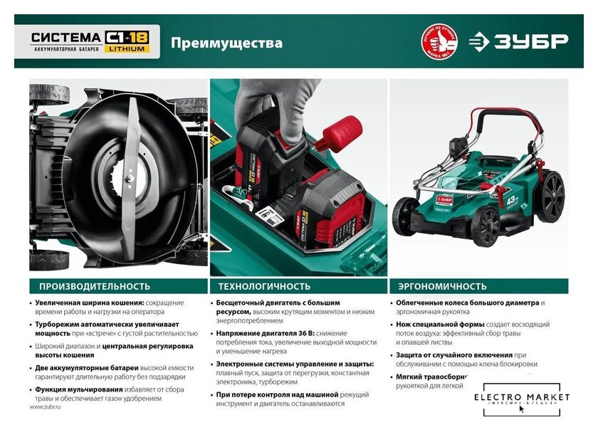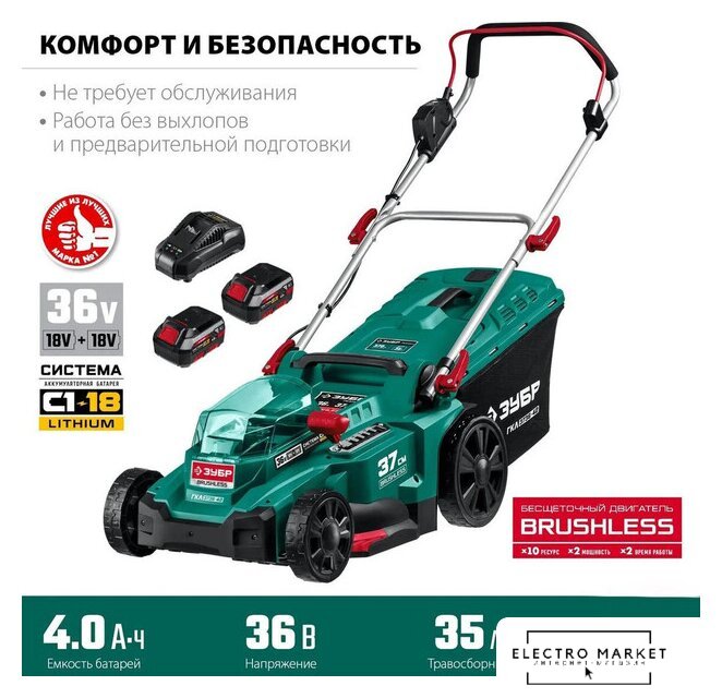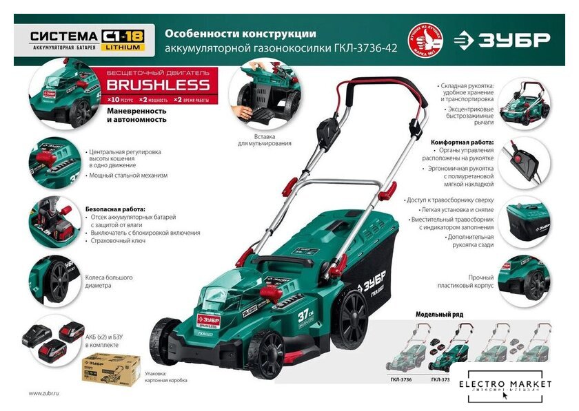 | Комплектация | - Травосборник - 2 АКБ- з/у- Рукоятка верхняя - Рукоятка нижняя - Ключ - Комплект крепежа - Руководство по эксплуатации |