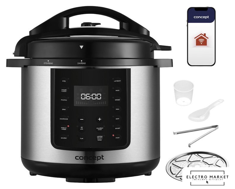 мультиварка-скороварка, объем 8 л, покрытие чаши нержавеющая сталь, мощность 1200 Вт, 13 программ, пароварка