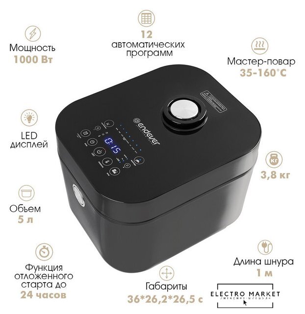 мультиварка, объем 5 л, покрытие чаши антипригарное, мощность 860 Вт, 10 программ, пароварка