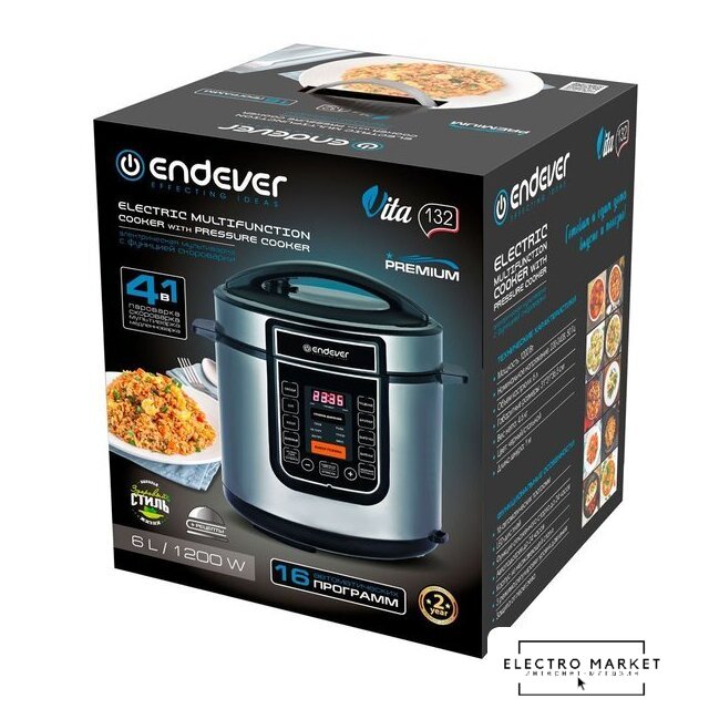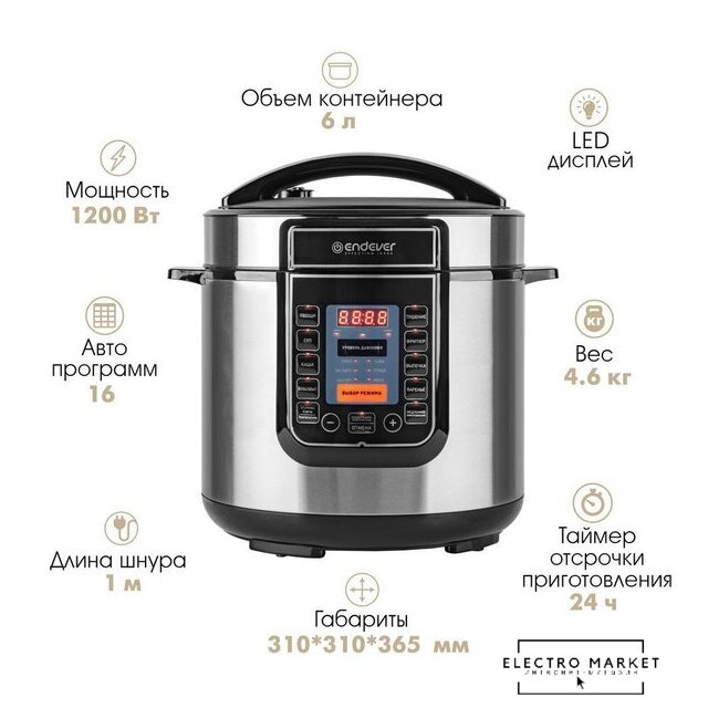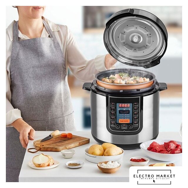 мультиварка-скороварка, объем 6 л, покрытие чаши антипригарное, мощность 1200 Вт, 12 программ, пароварка