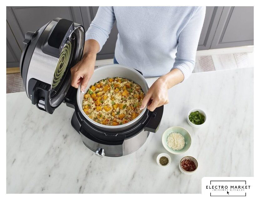 Перечень режимов работы | 14 функций приготовления под одной крышкой SmartLid: приготовление под давлением, жарка в воздухе, гриль, выпечка, обезвоживание, проверка, обжаривание/обжаривание, приготовление на пару, медленное приготовление, йогурт, блюда на пару, жарка в воздухе на пару, выпечка на пару, хлеб на пару.3 режима работы: Комбинированный паровой режимРежим приготовления под давлениемРежим обжаривания |