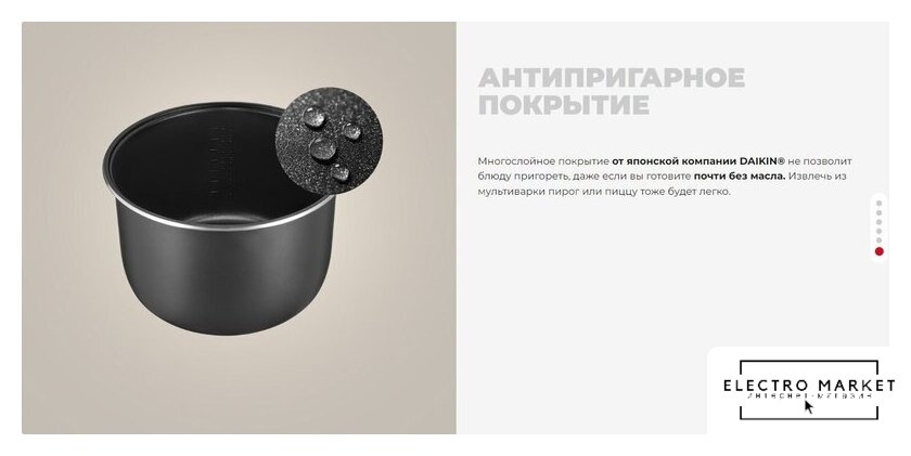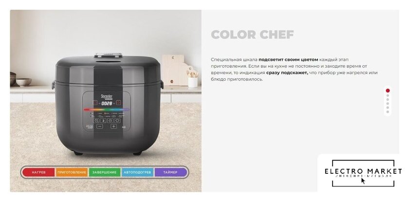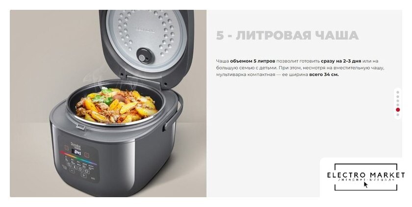 | Перечень режимов работы | жарка, мультиповар, томление, тесто, йогурт, молочная каша, приготовление на пару, экспресс готовка, рис, крупа, макароны, выпечка, суп, тушение, варка |