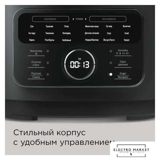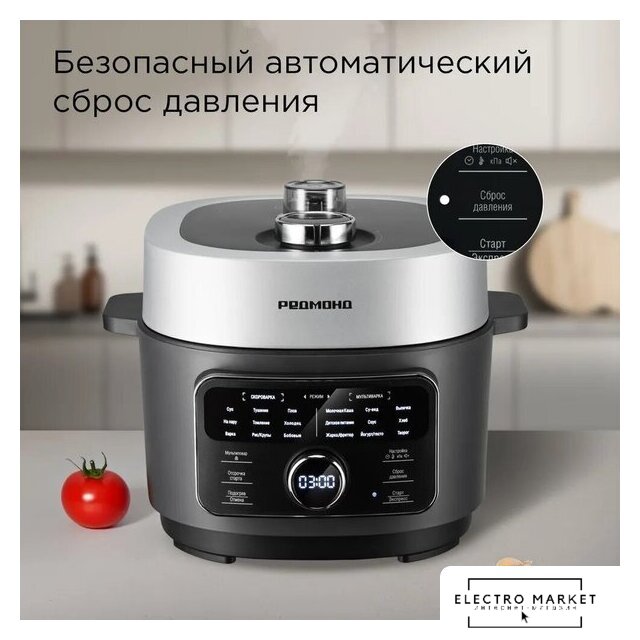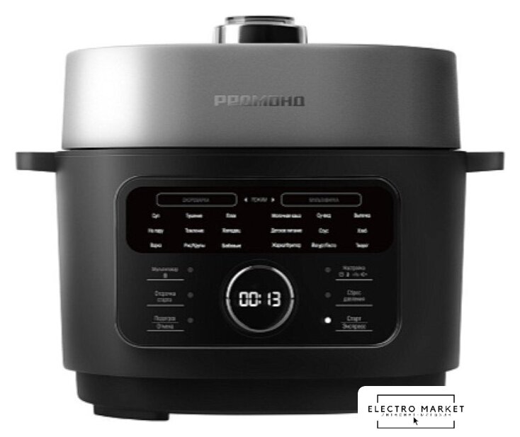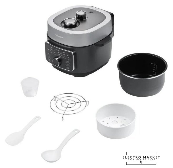 мультиварка-скороварка, объем 6 л, покрытие чаши нержавеющая сталь, мощность 1000 Вт, 9 программ, пароварка, йогуртница