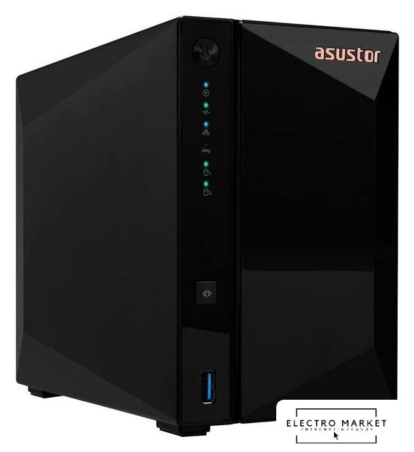 2 x 3.5"/2.5", RAID 1/Basic/JBOD/SHR (Synology Hybrid RAID), hot swap, охлаждение воздушное, LAN 1x 1 Гбит/с