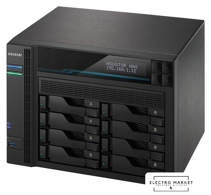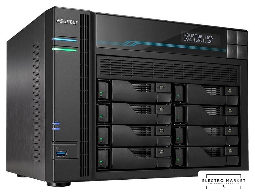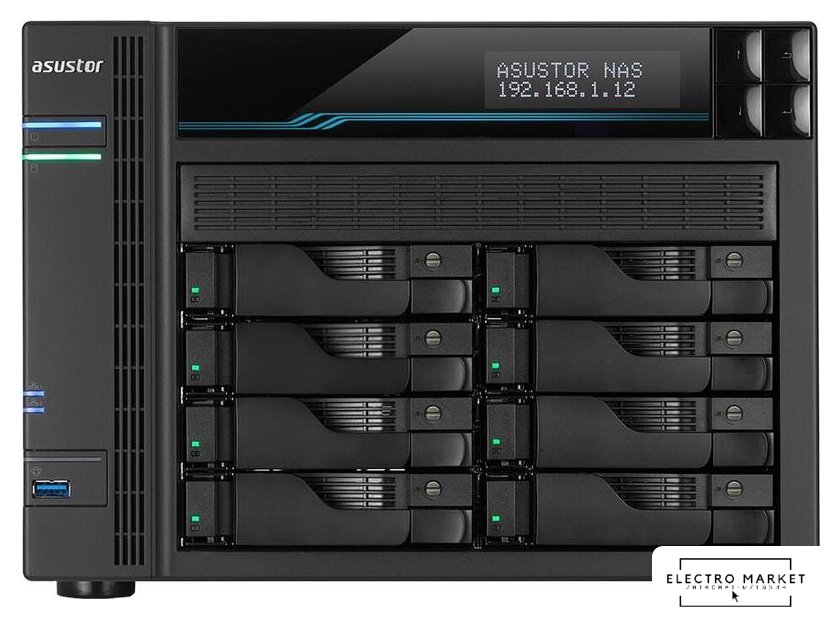 8 x 3.5"/2.5"/M.2 SATA 3.0/PCIe Gen3 x1, RAID 1/5/6/10/50/60/JBOD, hot swap, охлаждение воздушное, LAN 2x 2.5 Гбит/с, 3x USB-A 3.2 Gen2, 1x USB-С 3.2 Gen2