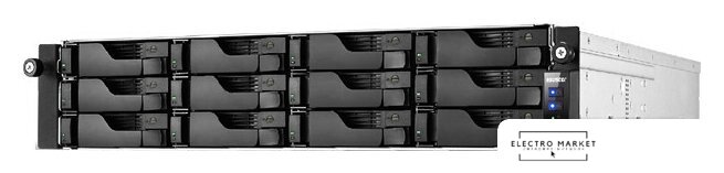 12 x 3.5"/2.5", RAID 1/5/5 + spare/6/6 + spare/10 + spare/JBOD, hot swap, охлаждение активное, LAN 2x2.5 Гбит/с + 2x10 Гбит/с, 4xUSB 3.0