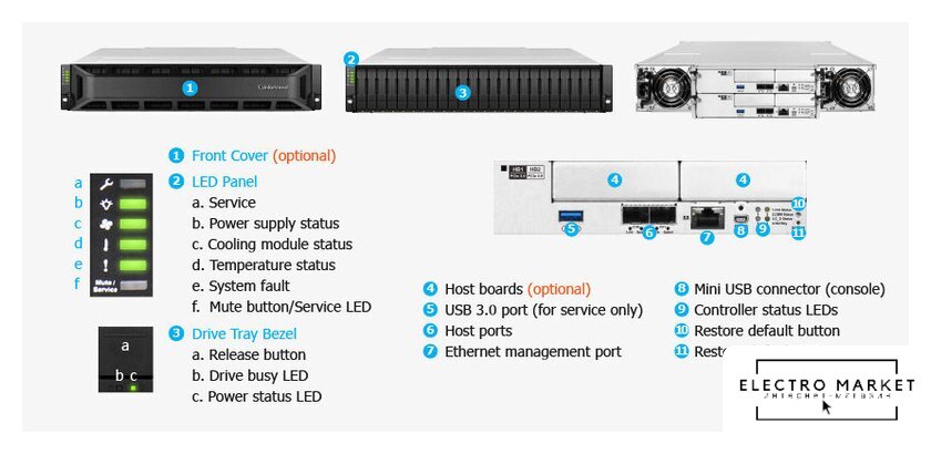 60 x 3.5"/2.5" SATA 3.0/SAS 3, RAID 1/5/6/10/JBOD, hot swap, охлаждение воздушное, LAN 3x1 Гбит/с + 2x10 Гбит/с, 2x USB-A 3.2 Gen1