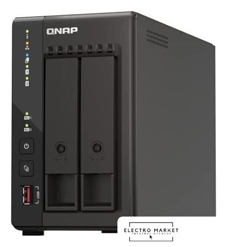 2 x 3.5"/2.5" SATA 3.0, RAID 1/5/6/10/JBOD, hot swap, охлаждение воздушное, LAN 2x 2.5 Гбит/с, 2x USB-A 3.2 Gen2