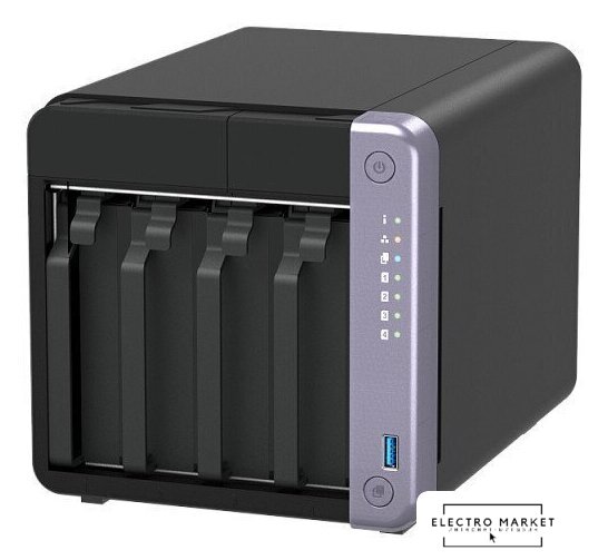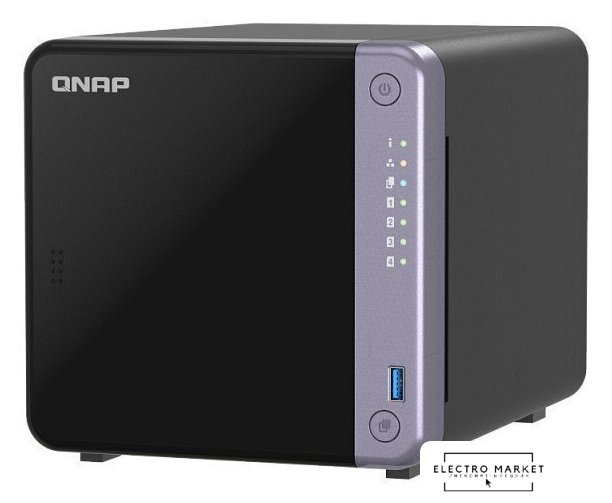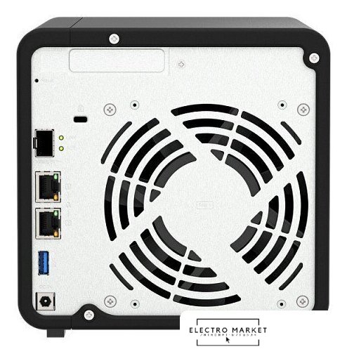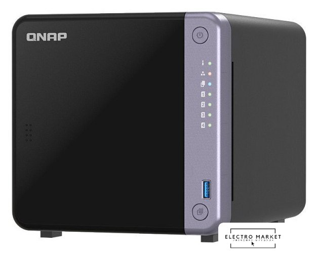 4 x 3.5"/2.5", RAID 1/5/6/10/JBOD, hot swap, охлаждение воздушное, LAN 4x 1 Гбит/с, 2xUSB 3.0, 1xeSATA