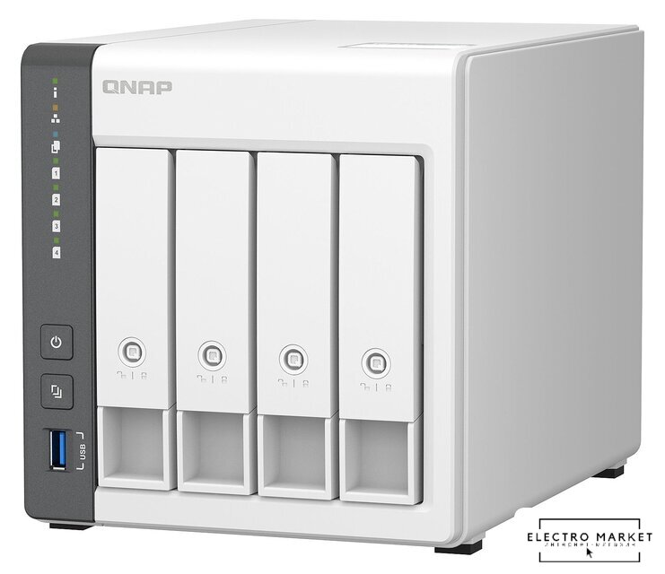 4 x 3.5"/2.5", RAID 1/5/6/10/JBOD, hot swap, охлаждение пассивное, LAN 2x 2.5 Гбит/с