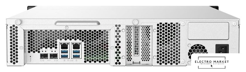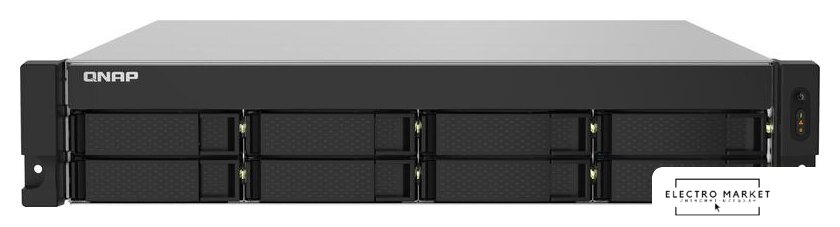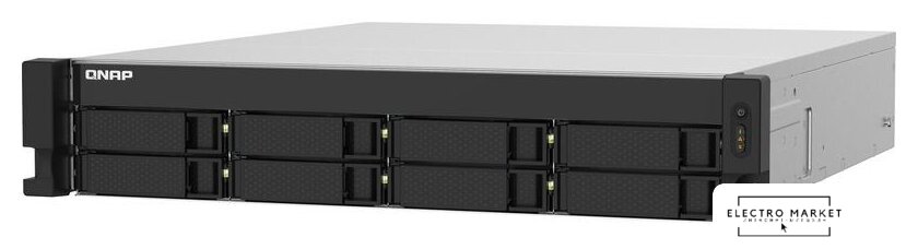 8 x 3.5"/2.5" SATA 3.0, RAID 1/5/5 + spare/6/6 + spare/10 + spare/50/60/JBOD, hot swap, охлаждение воздушное, LAN 2x2.5 Гбит/с + 2x10 Гбит/с, 3x USB-A 3.2 Gen1