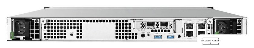 4 x 3.5"/2.5", RAID 1/5/6/10/50/60/JBOD, hot swap, охлаждение воздушное, LAN 2x2.5 Гбит/с + 2x10 Гбит/с, 4xUSB 3.0