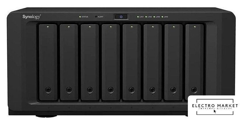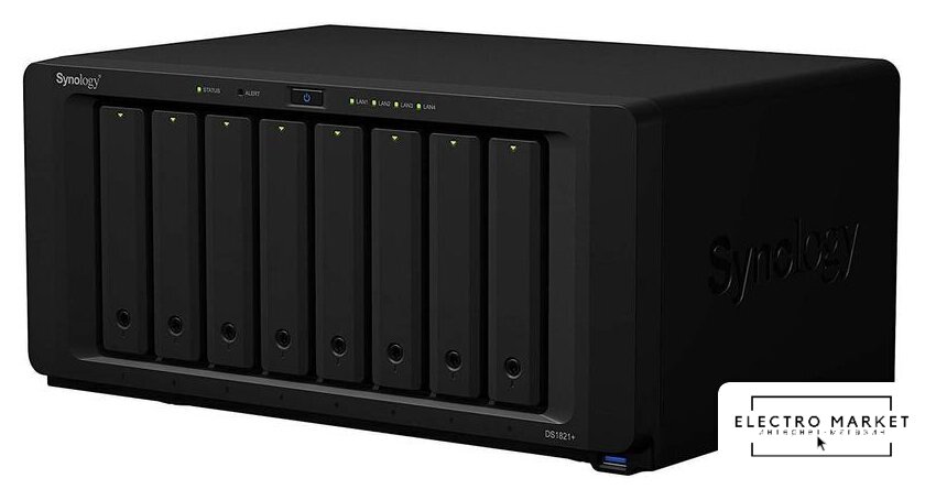 8 x 3.5"/2.5", RAID 1/5/5 + spare/6/6 + spare/10 + spare/JBOD, hot swap, охлаждение активное, LAN 2x2.5 Гбит/с + 2x10 Гбит/с, 4xUSB 3.0