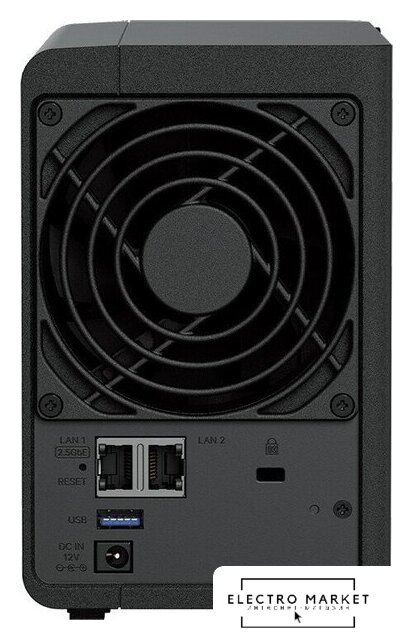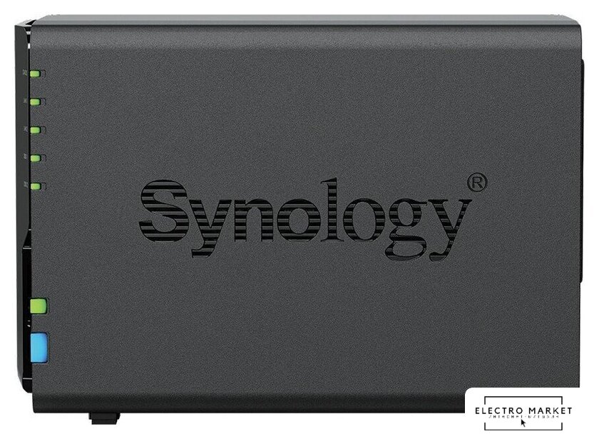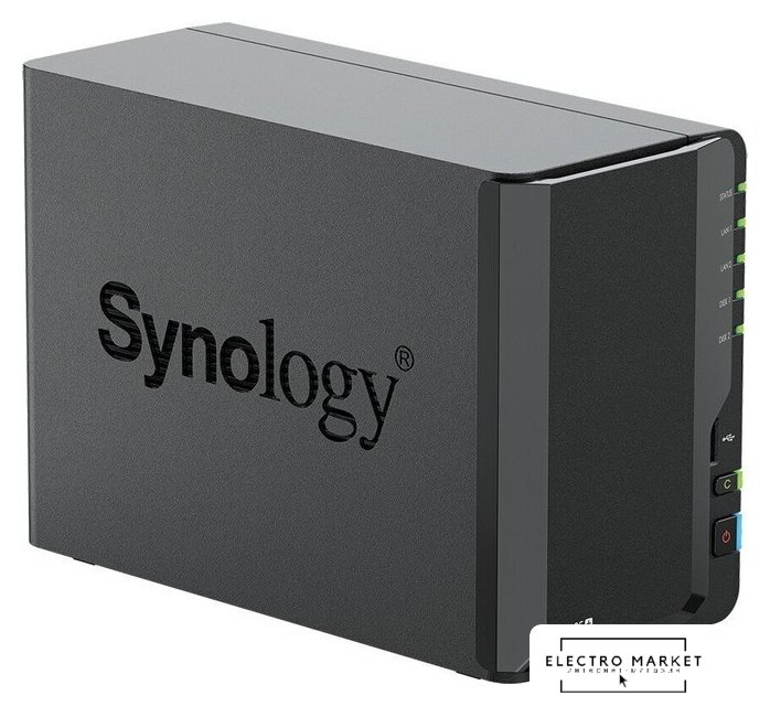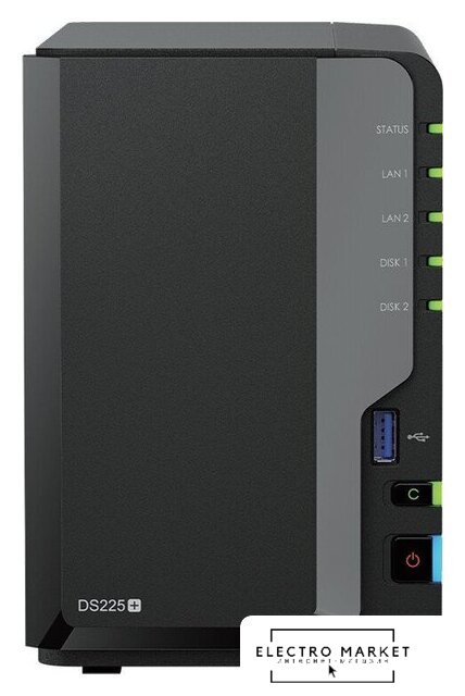 2 x 3.5"/2.5", RAID 1/Basic/JBOD/SHR (Synology Hybrid RAID), hot swap, охлаждение воздушное, LAN 1x 1 Гбит/с