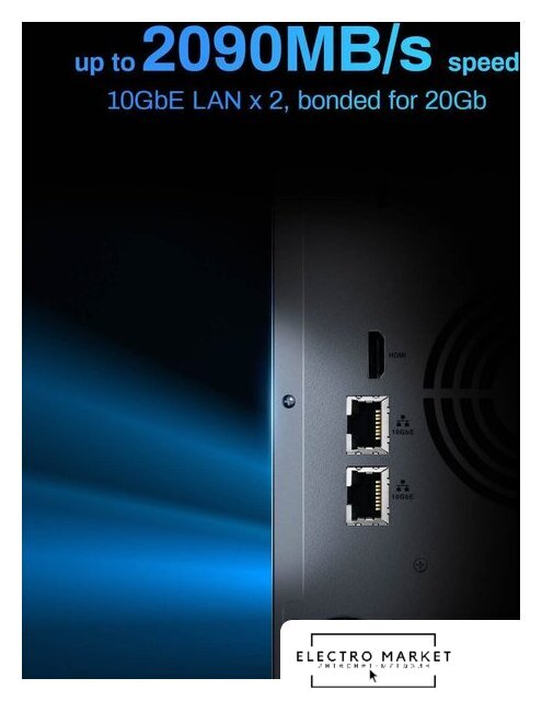 4 x 3.5"/2.5"/M.2, RAID 1/5/6/10/JBOD, hot swap, охлаждение воздушное, LAN 2x 2.5 Гбит/с, 2xUSB 2.0, 2xUSB 3.0