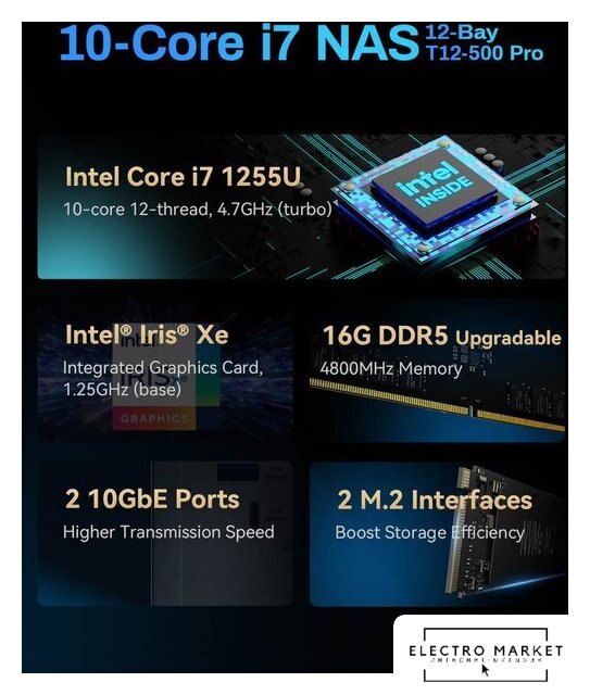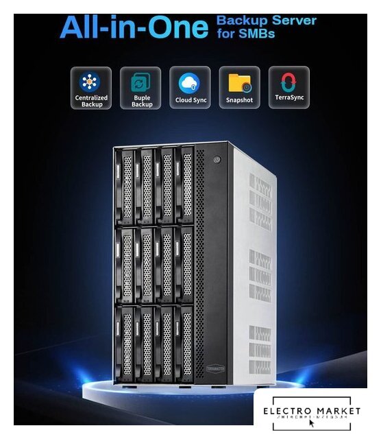| Максимальный объем накопителей | До 264 ТБ (12 x 22 ТБ HDD) + возможность расширения через USB DAS |