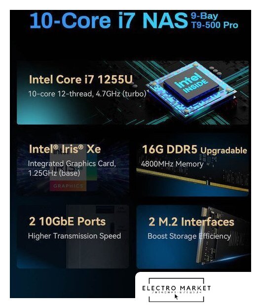 8 x 3.5"/2.5" SATA 3.0, RAID 1/5/6/10/JBOD, hot swap, охлаждение воздушное, LAN 2x2.5 Гбит/с + 2x10 Гбит/с, 4x USB-A 3.2 Gen1