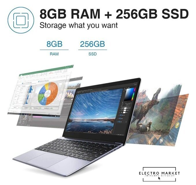 14.1" 1920 x 1080, IPS, 60 Гц, Intel Celeron N4020, 8 ГБ LPDDR4, SSD 512 ГБ, видеокарта встроенная, Windows 11 Home, цвет крышки серый, аккумулятор 33 Вт·ч